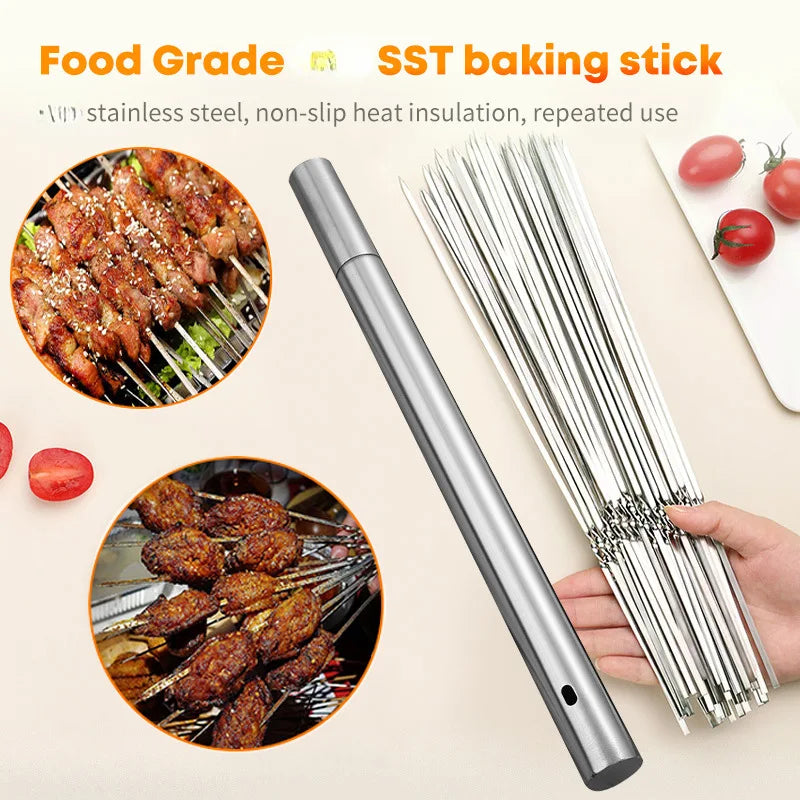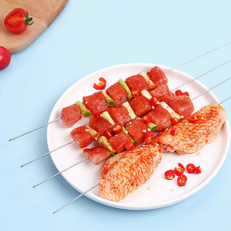 שיפודי ברביקיו איכותיים מנירוסטה, עמידים בחום ומתאימים לצלייה של שish kebab, בשר, ירקות ועוד. אידיאליים לשימוש בחוץ – קמפינג, פיקניק, מנגל ביתי וכל כלי הבישול הנלווים. קלים לניקוי ולשימוש חוזר, כלי חובה לכל חובב גריל.