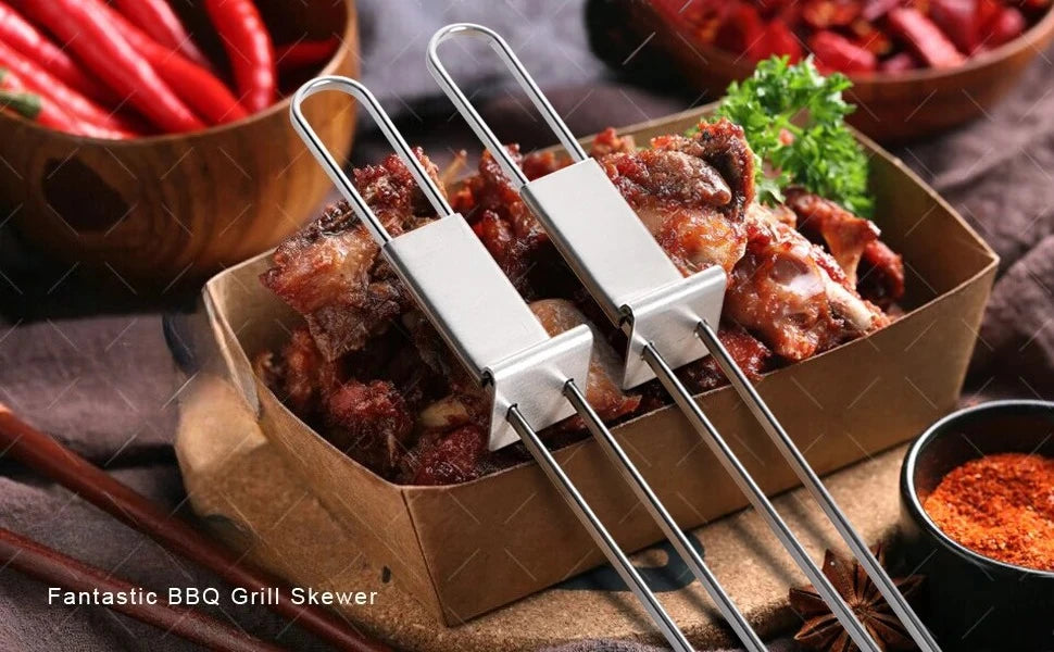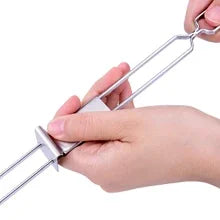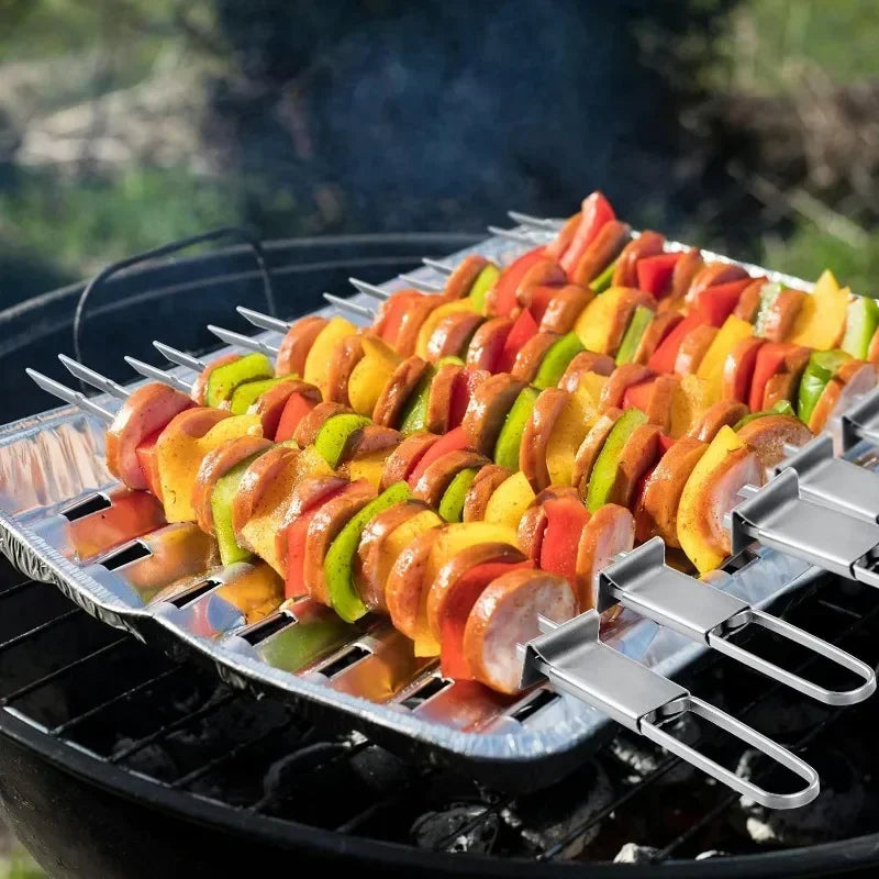 שיפוד ברביקיו מנירוסטה עם שתי מחטים ופלטת דחיפה עצמית שיפוד איכותי להכנת בשרים וירקות בקלות. עשוי נירוסטה חזקה, מאפשר השחלה יציבה ומהירה וכולל פלטה לדחיפה נוחה של המזון. מושלם למנגל ביתי, קמפינג ופיקניק. אביזר חובה לכל חובב BBQ.