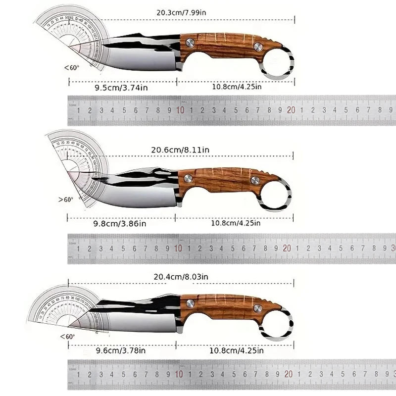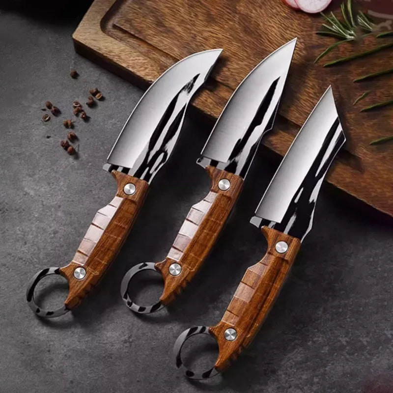 סט סכינים רב־תכליתי 3 חלקים סט מקצועי 3 יחידות סכינים יעודיות לבשר וירקות – כולל סכין ייעודית להסרת עצמות, עשויה פלדת אל-חלד חדה לחיתוך בשר, וסכין פירות ניידת ונוחה לשימוש.