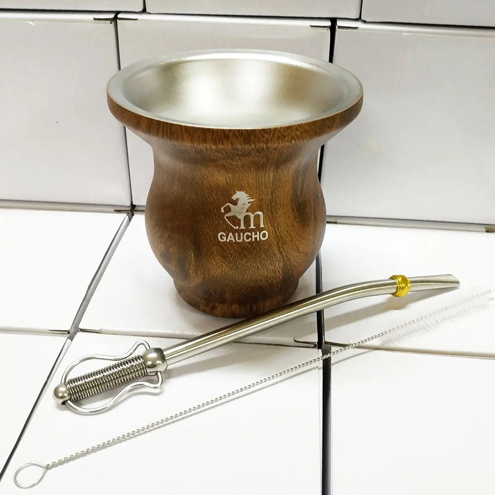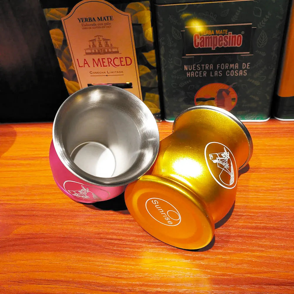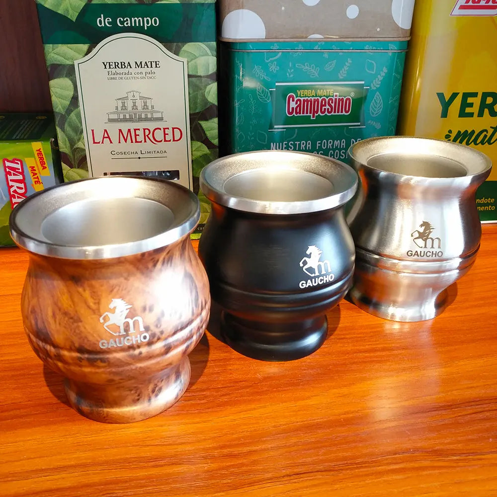 كوب غواشو يربا ماتي من الفولاذ المقاوم للصدأ، الأرجنتين، كالاباش مزدوج الجدار مع عزل حراري