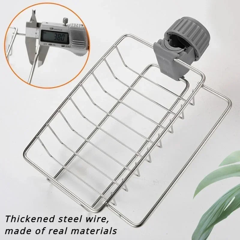 מתקן תלייה נשלף מנירוסטה לכיור – מדף אחסון חכם על הברז לספוגים, סמרטוטים ואביזרי ניקוי. עמיד, נוח וחוסך מקום – לשמירה על כיור מסודר ונקי בסטייל.