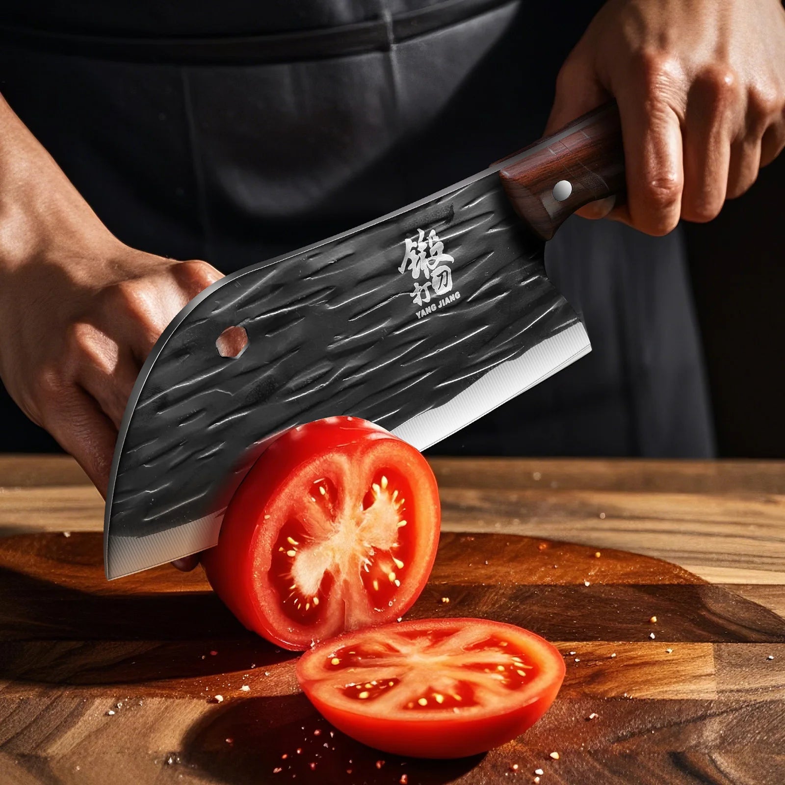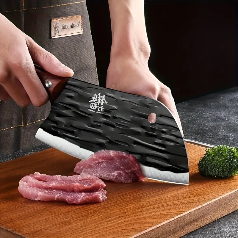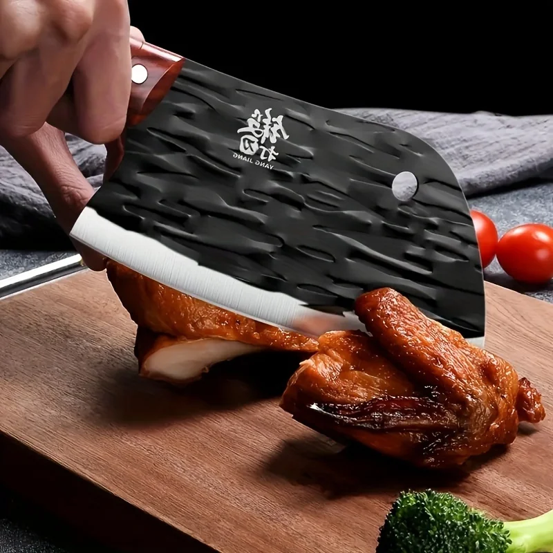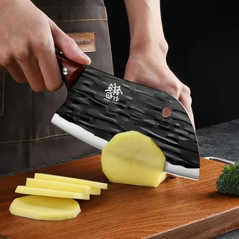 סכין מטבח רב-תכליתית מחושלת, עשויה פלדת אל-חלד לחיתוך ירקות ובשר. מתנה מושלמת לאוהבי בישול וכלי מטבח איכותיים.
